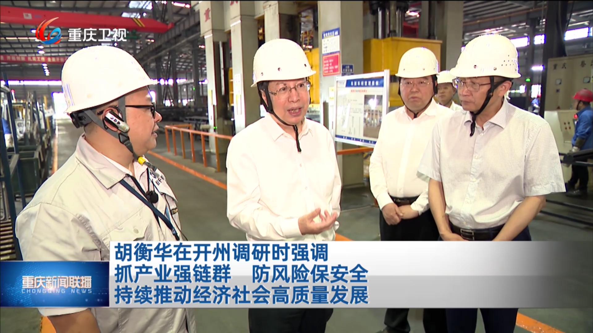 胡衡华:抓产业强链群 防风险保安全 持续推动经济社会高质量发展 5月13日,市委副书记、市长胡衡华前往开州区调研。他强调,要深入贯彻习近平总书记视察重庆重要讲话重要指示精神,锚定目标、干字当头、唯实争先,全力抓产业强链群,防风险保安全,持续推动经济社会高质量发展。
