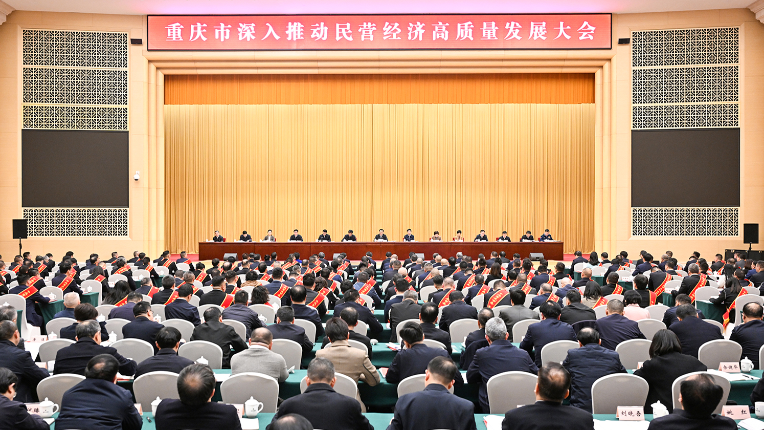 民营经济之重,是常识,也是共识。对民营经济,党和国家基本方针政策“不能变,也不会变”,这既是一份庄严承诺,更是对民营企业向高而攀、向新而行的鼓劲加油。刚刚召开的这次大会,确定了加快建设民营经济发展高地的目标,就是重庆第一时间贯彻习近平总书记在民营企业座谈会上重要讲话精神的具体行动。海阔凭鱼跃,天高任鸟飞。置身中国式现代化的宏大场景,新重庆建设正快马加鞭,为民营经济乘风破浪、民营企业家大显身手搭建了广阔舞台。我们要用好用足各项扶持政策,持续优化营商环境,帮助民营企业翻越市场的冰山、融资的高山、转型的火山,让民营经济在高质量发展的道路上繁花相随、枝叶满天,推动现代化新重庆建设行稳致远。