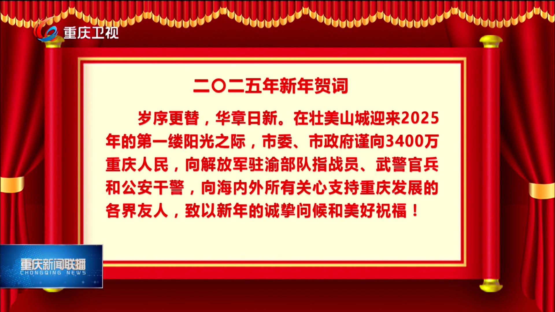 新年到来之际,中共重庆市委、重庆市人民政府发表新年贺词,向社会各界送上新年问候和美好祝福。