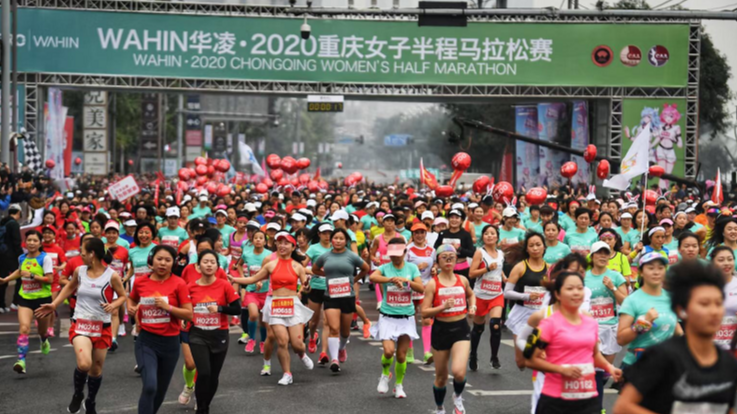 11月8日上午8时,由重庆市体育局指导,重庆日报报业集团主办的2020重庆女子半程马拉松赛在南滨路鸣枪开赛。