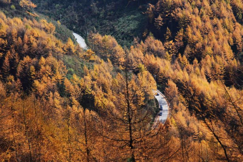 重庆巫山:红叶渐变红 呈多彩“变色谱”