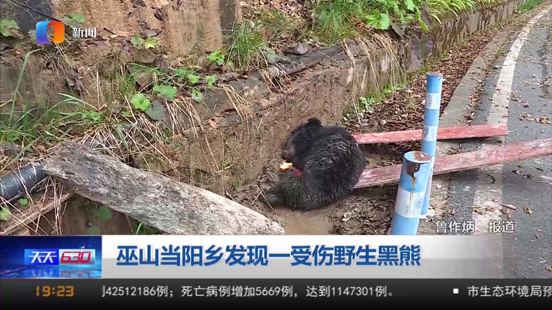 位于巫山的重庆五里坡国家级自然保护区当阳管理站,接到群众电话,说在保护区境内的当九路边,发现了一只受伤黑熊。管理站工作人员与派出所民警立即赶到了现场。