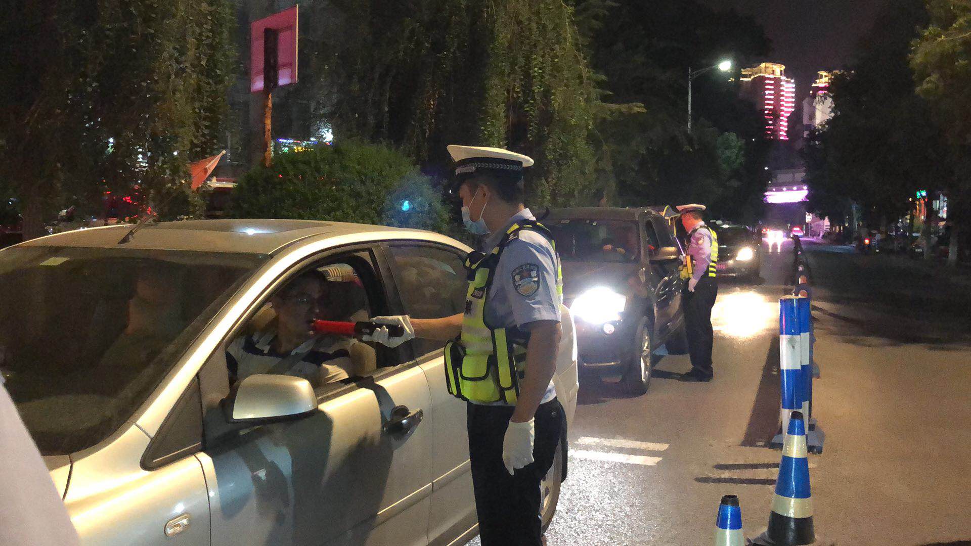 合川交巡警严查酒驾违法行为