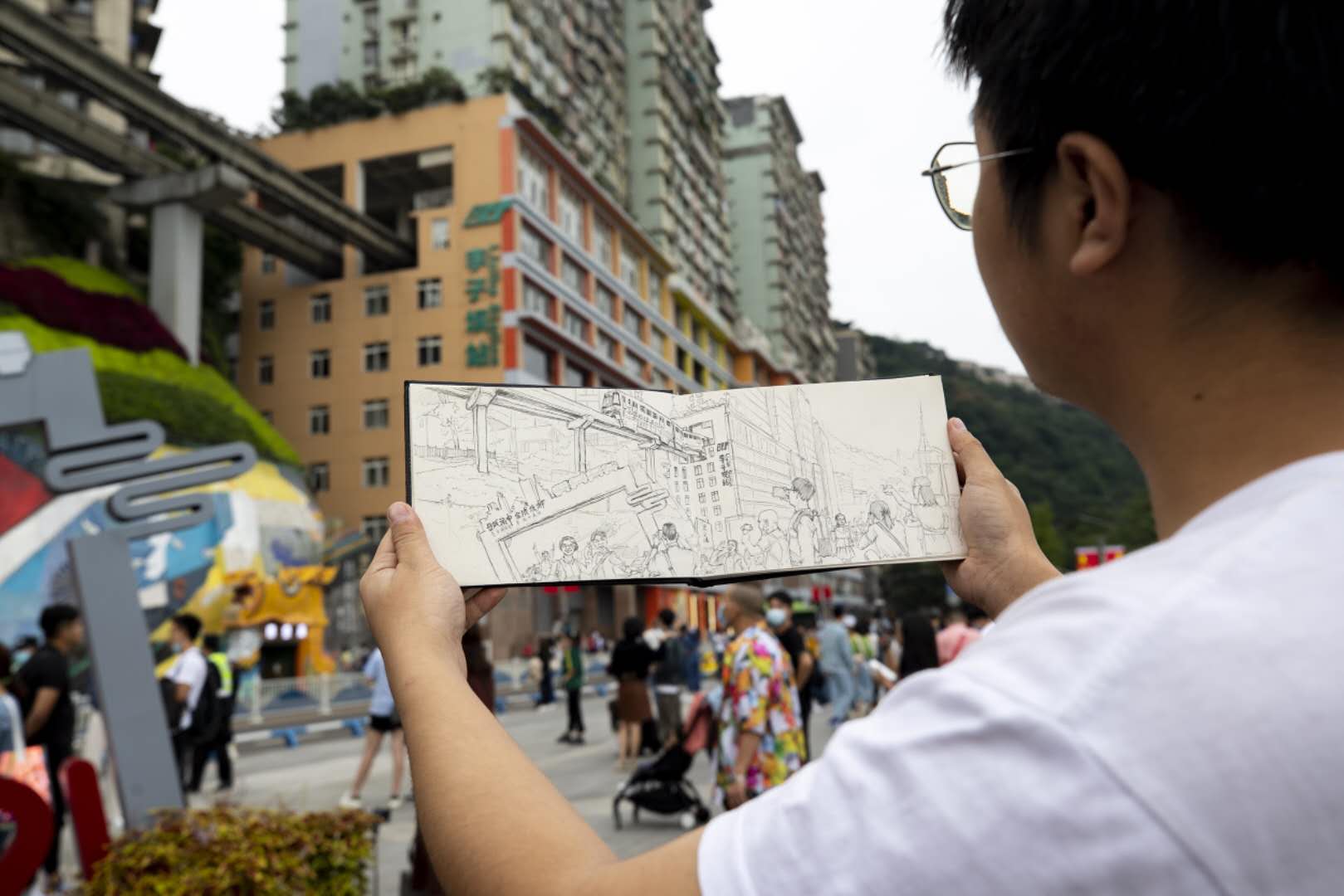 1日,游客纷纷走进渝中各个热门景区景点,感受重庆“母城”魅力,渝中志愿者的忙碌身影也成为热门景区景点的“红色风景”。