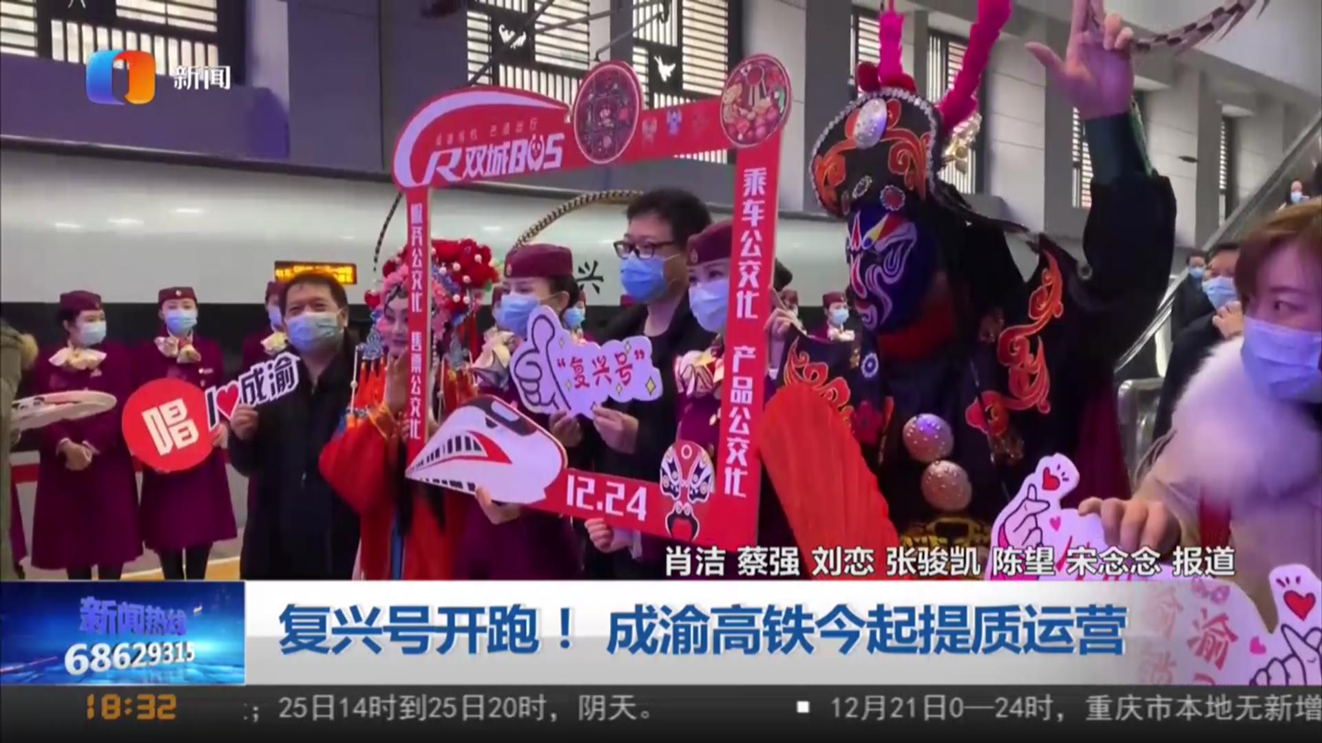 今天(12月24日)早上9:15,成渝高铁首趟复兴号动车组,从沙坪坝站始发,开往成都东,这标志着成渝高铁启动提质运营,沿线旅客出行将更加便捷。