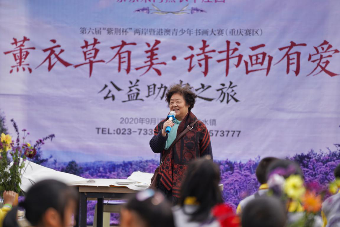 9月18日,第六届“紫荆杯”两岸暨港澳青少年书画大赛(重庆赛区)“薰衣草有美·诗书画有爱”公益助农之旅活动在美丽的石柱黄水镇紫絮柴门薰衣草庄园拉开帷幕。