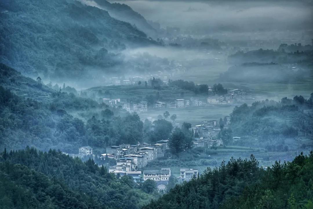 九月,雨后的重庆市巫溪县古路镇,云雾和稻田构成了一幅秀美的乡村画卷。