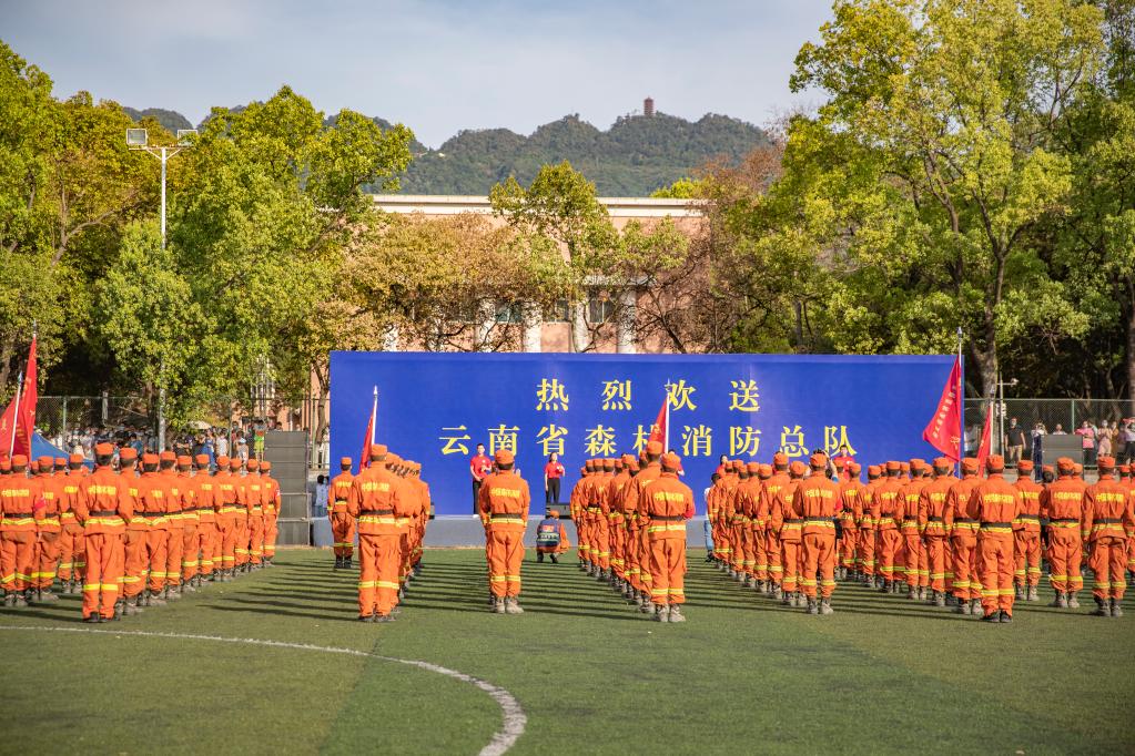 28日清晨,位于重庆市北碚区的西南大学第三运动场上,300多名云南森林消防队员整齐列队。在取得森林灭火的阶段性胜利后,他们即将启程返回驻地。