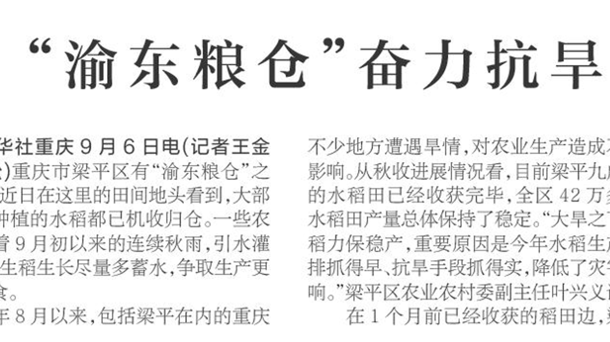 新华网 | “渝东粮仓”奋力抗旱保水稻稳产