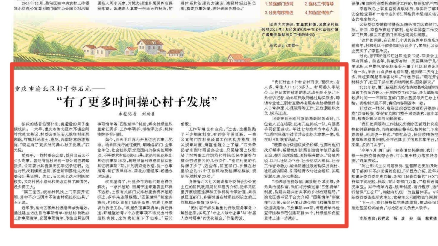 人民日报党建版头条报道重庆:人才聚起来 事业旺起来(深度关注) 今年10月下旬,重庆市两江新区举行的人才政策宣讲会,气氛热烈。“今年,重庆推出人才工作系列政策,各级政府部门不仅让我们及时了解政策,还帮助精准对接,让我们实实在在受益。”中科计算技术西部研究院科技管理部部长张杨说。