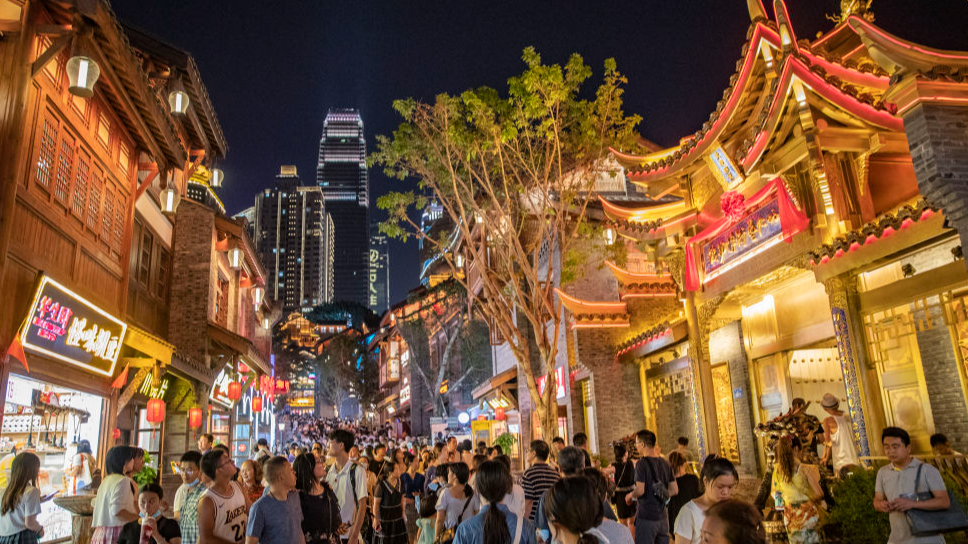 吊脚小楼、窄巷陡梯,既有巴渝传统建筑、特色文博展馆,也有时尚的餐饮店铺、酷炫的光影灯饰……国庆期间,9月30日正式开街的重庆“十八梯”传统风貌区在做好疫情防控的前提下,吸引了大量游客前来“打卡”。“我是专门带着孩子来游玩的,让孩子来体验老重庆是什么样子。”游客黄秀娟对记者说。
