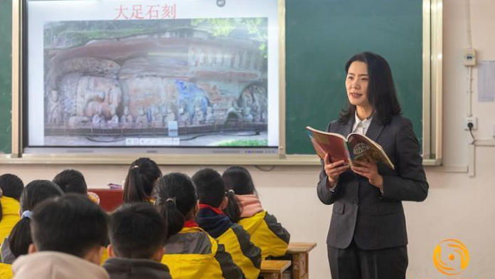 3月1日,大足中学的同学们上历史课时发现,最新修订的国家统编教材《中国历史》七年级下册中新出现了家乡传统文化的身影:在第12课《宋元时期的都市和文化》中,大足石刻释迦牟尼涅槃圣迹图赫然纸上。