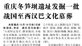 光明日报 | 重庆冬笋坝遗址发掘一批战国至西汉巴文化墓葬