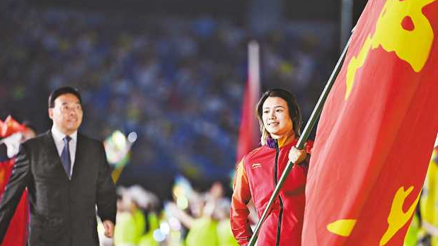 9月15日晚,第十四届全运会开幕式在西安奥林匹克体育中心举行。开幕式上,重庆体育代表团排在第22位出场,奥运冠军、重庆籍跳水运动员施廷懋担任重庆体育代表团旗手,引领重庆体育代表团入场。