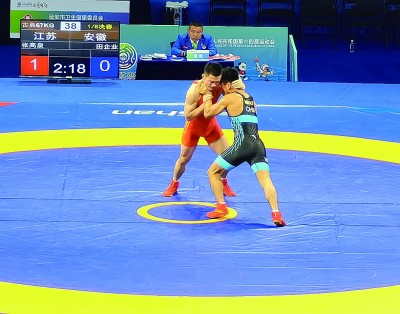 9月25日,第十四届全运会摔跤比赛在陕西延安体育中心体育馆进行第三日的对决。作为起源最早的运动之一,摔跤采用一对一的角斗形式进行,是力量与智慧的双重交锋。