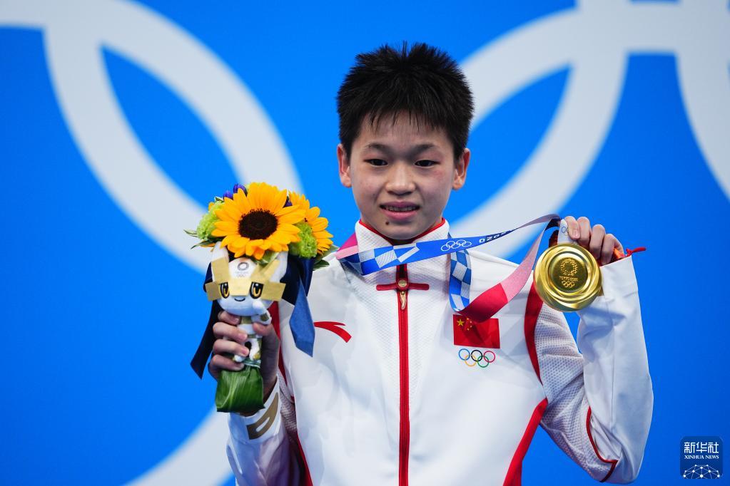 10米跳台决赛,五个动作三跳满分!东京奥运会上,14岁少女全红婵一鸣惊人。作为中国奥运代表团最年轻的运动员,以创纪录的成绩夺得10米跳台冠军,让五星红旗高高飘扬在东京水上运动中心上空。