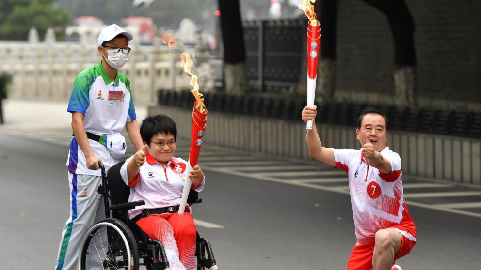 16日上午,第十四届全国运动会、第十一届全国残运会暨第八届全国特奥会火炬传递点火起跑仪式在陕西省西安市永宁门(南门)广场举行,100名火炬手完成首站的接力奔跑。