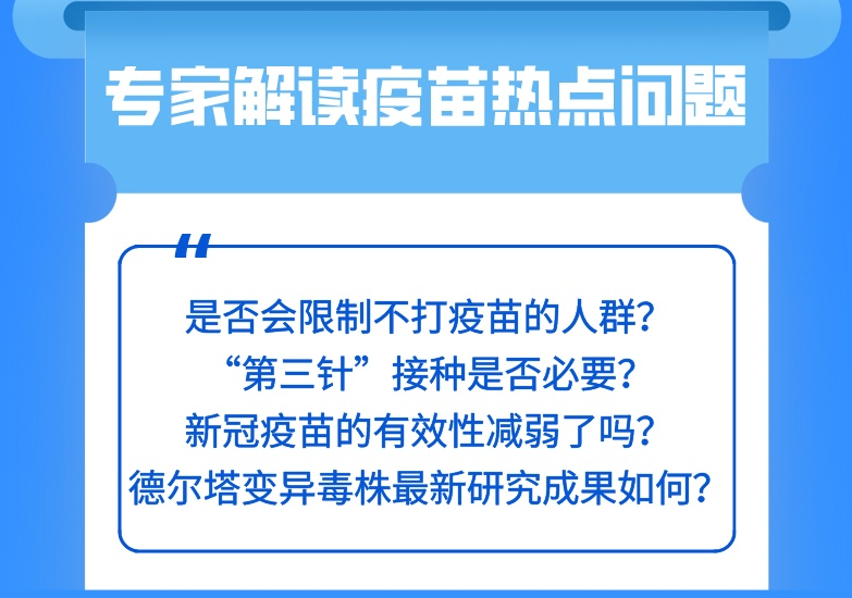 是否会对不打新冠疫苗的人群进行限制?“第三针”接种是否必要?新冠疫苗的有效性减弱了吗?权威专家针对近期出现的新冠疫苗热点问题进行解答。