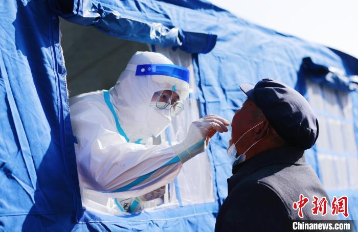 晚上8时半,谢得宏护目镜上虽充满雾气和水珠,透过护目镜,中新网记者能清晰地看到他红肿充血的眼睛。作为青海省海东市第二人民医院骨科医生,从21日早晨8时许接到通知,到第二轮检测结束,他一直坚守在此。