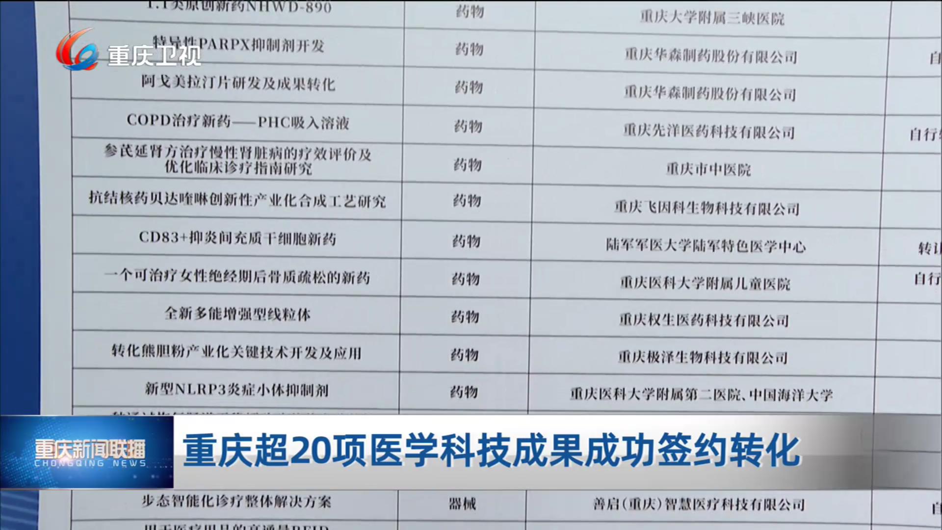 重庆市医学科技创新成果转化大赛近日圆满落幕。大赛设置药物、器械、医疗技术三个赛道,自启动以来,吸引了370余个项目报名参赛,46项优秀成果进入决赛,其中超20项创新成果在竞赛过程中实现合作对接,成果转化落地合同金额近两亿元,预计先期催生产值近20亿元。