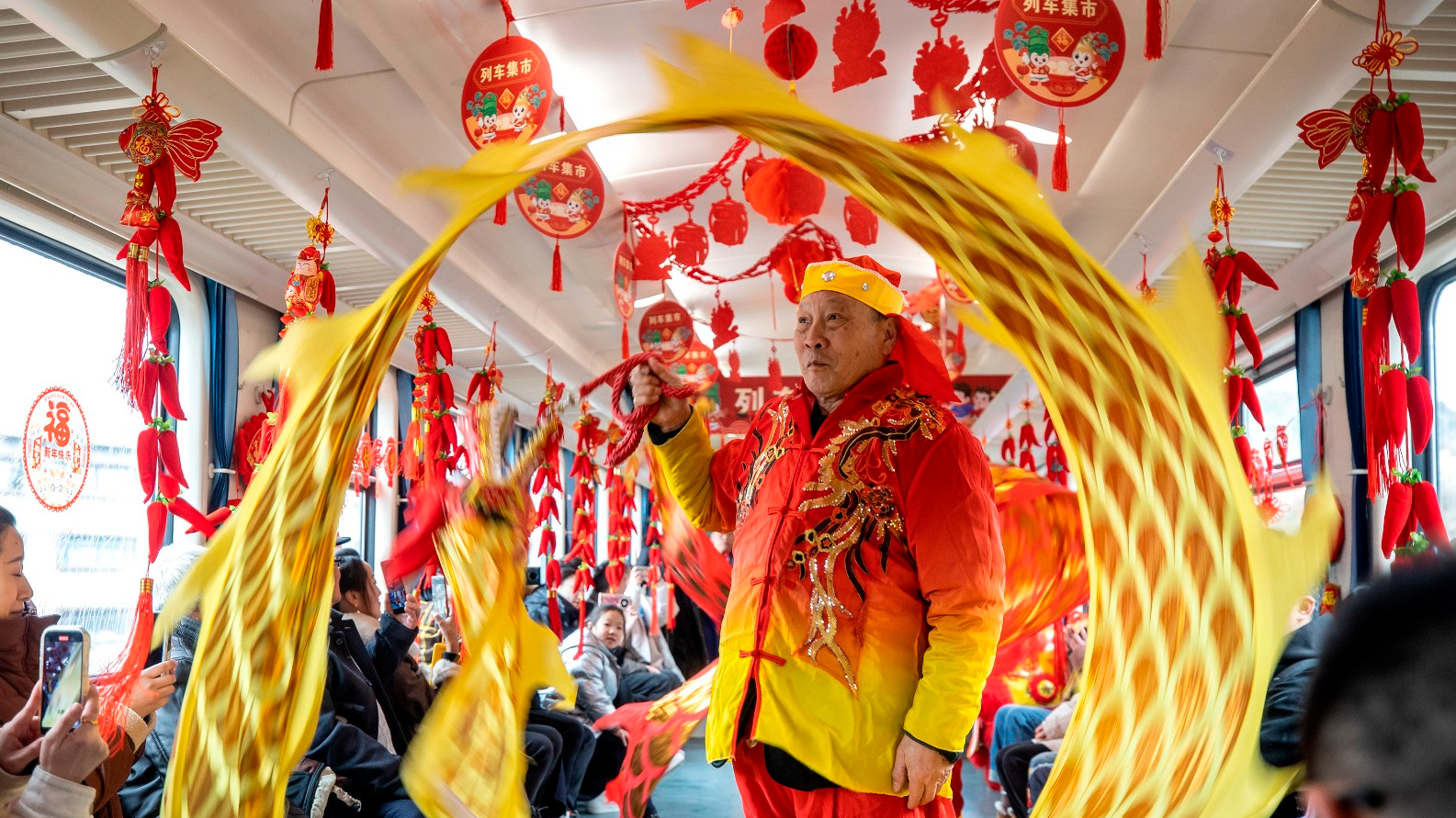 元宵节来临,重庆铁路部门在贵州遵义开往重庆的5630次慢火车上,推出元宵民俗体验活动。旅客不仅可以观看非遗文化表演、猜灯谜、包元宵,还能在列车上逛集市,过了一个传统的元宵节。