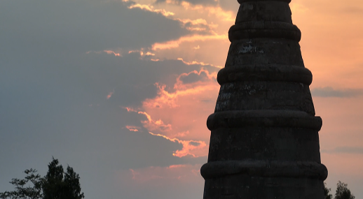 清晨,朝霞映照大足城区,南山文峰塔在朝霞的映照下,更显雄伟壮观。