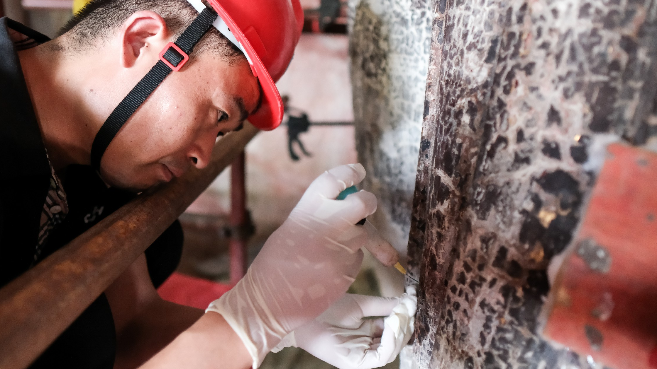 弹子石摩崖造像第二阶段修缮工程进入收尾阶段,准备迎接二阶段初步验收。据了解,第二阶段修缮工作主要开展石造像彩绘金箔层病害治理佛龛、题刻修复以及大佛阁修复等工作。