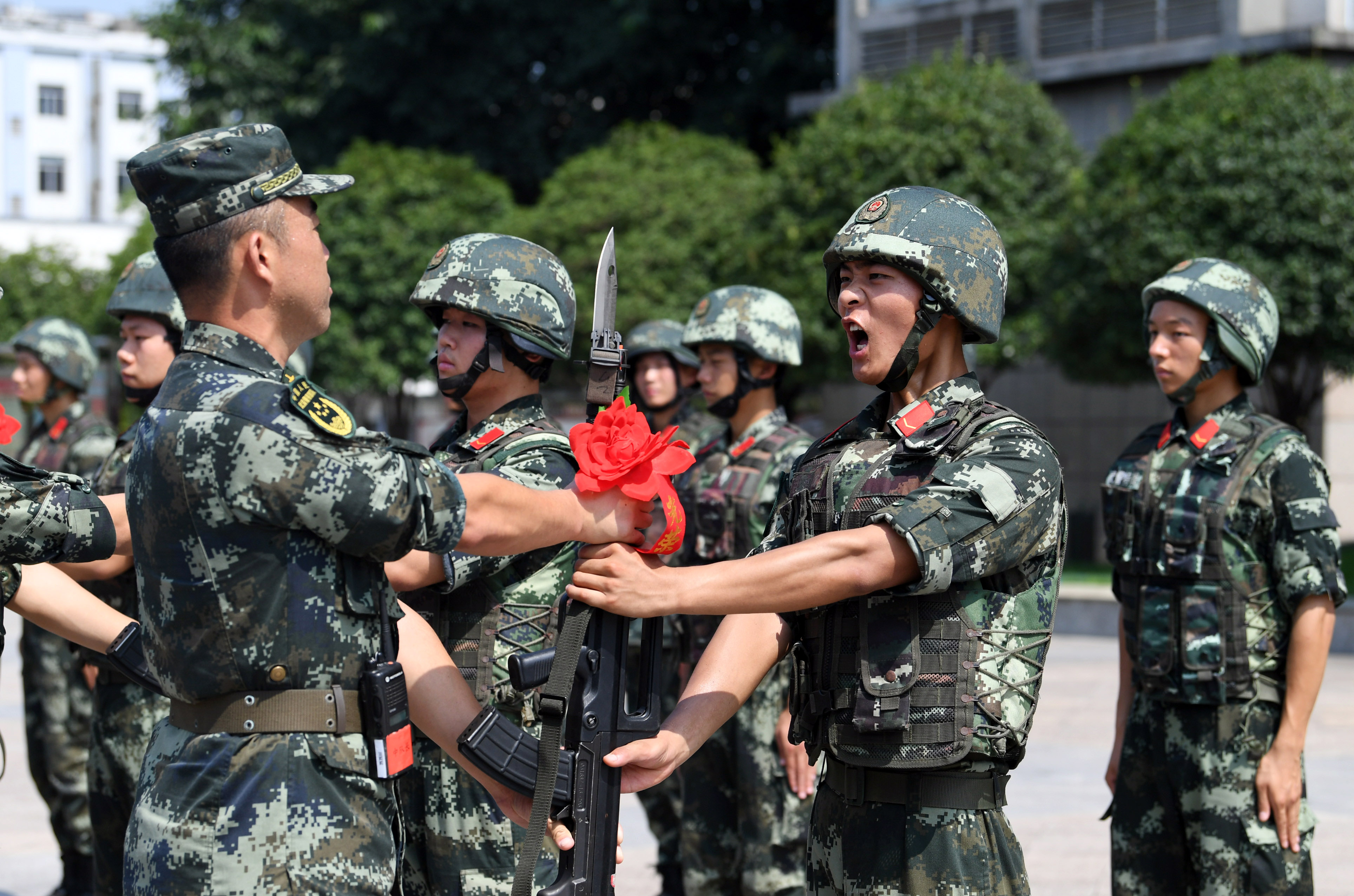 接过钢枪 把青春压进枪膛 直击重庆武警新兵授枪仪式 7月13日上午,武警重庆总队执勤第一支队机动大队隆重举行新兵授枪仪式。20余名新战士在经历三个多月的强化训练后,通过自己不懈的努力和拼搏,终于在这次授枪仪式中,接握属于自己的“钢枪”。