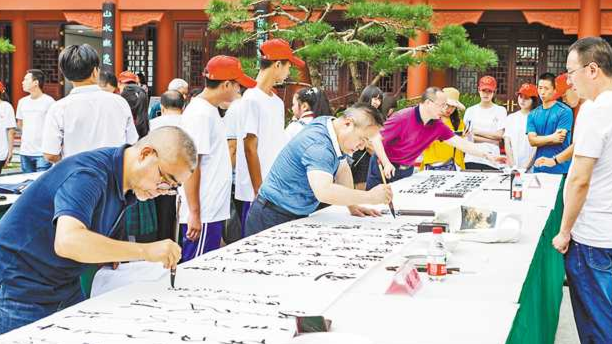 6月28日,由市文联和南川区共同举办的“铭记初心 砥砺前行”重庆市知名书法家庆祝中国共产党成立100周年(南川)百米长卷创作活动在南川区金佛山书画院举行。