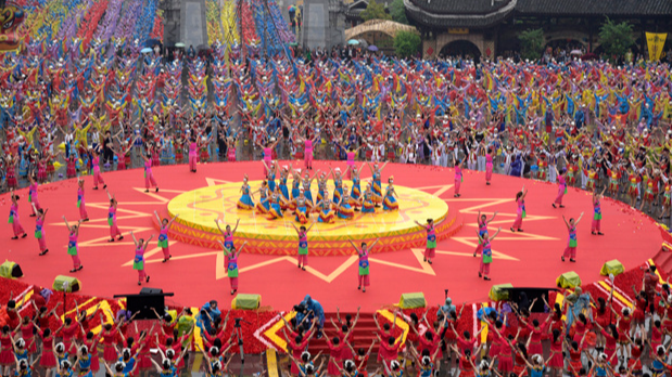 踩花山节是重庆彭水苗族土家族自治县苗族的传统节日,每年农历四月初八在苗寨的花坝子举行。苗族同胞身着节日盛装,头戴精美银饰从四里八乡汇聚到花坝子,祭祀蚩尤,尽情对歌、盘歌、跳舞,他们以节助兴、以节传情、以节为媒,释放劳作的艰辛、传递丰收的喜悦、收获爱情的幸福,成为演绎苗族传统歌舞的饕餮盛宴,共育民族交流交融的喜庆乐园。