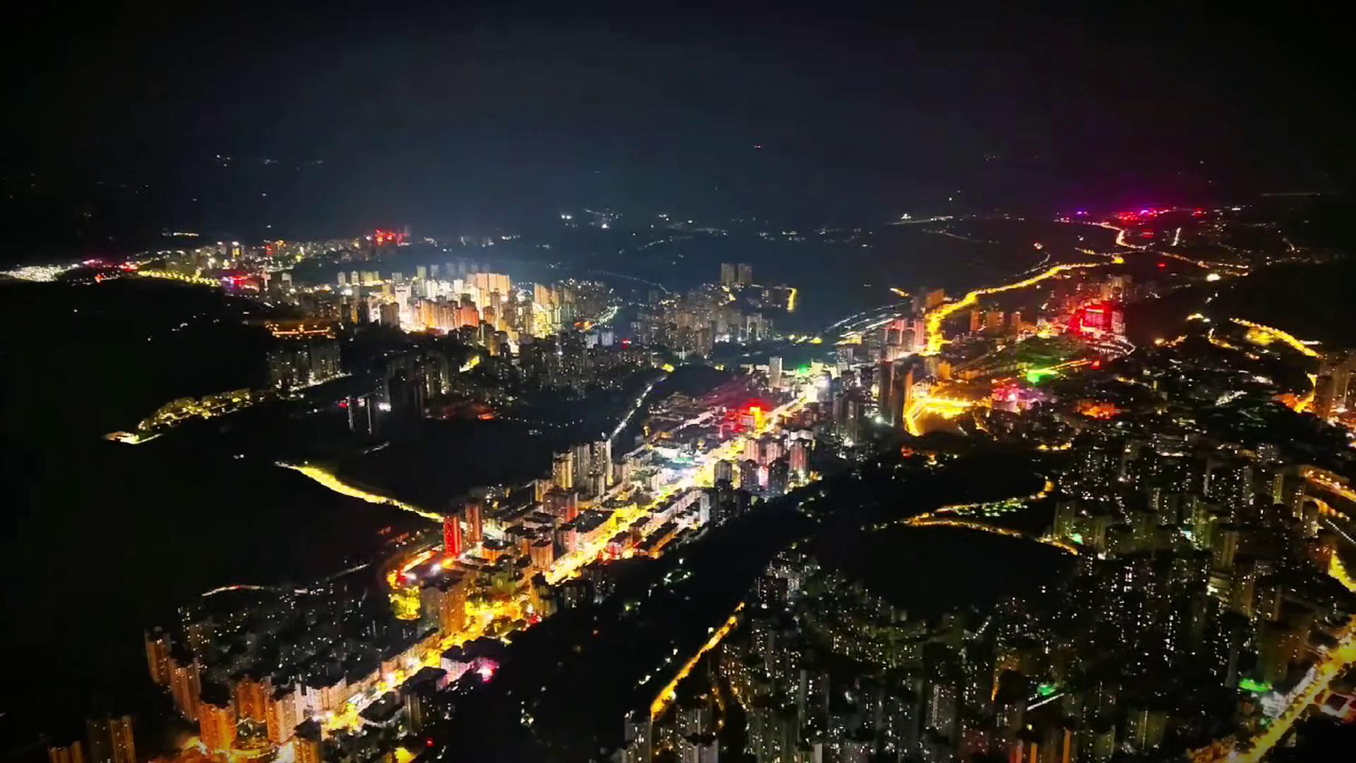 随着夜幕降临,綦城大地璀璨的灯光逐渐亮起,放眼望去像五颜六色的灯带一般蔓延开来,构成一幅绝美的城市画卷,让人流连忘返。