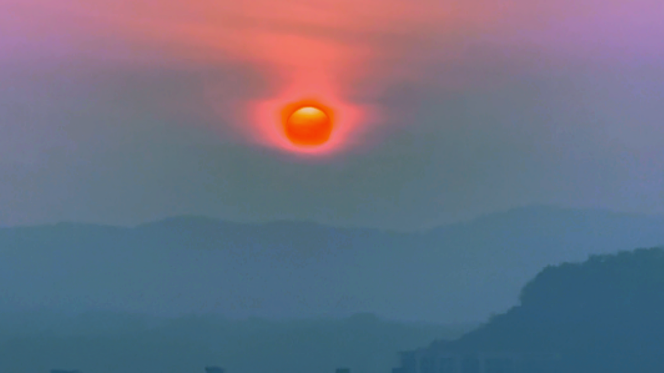 冬日的万州江畔,落日熔金,缓缓西沉,杉红映江,勾勒出一幅多彩的城市山水画卷。