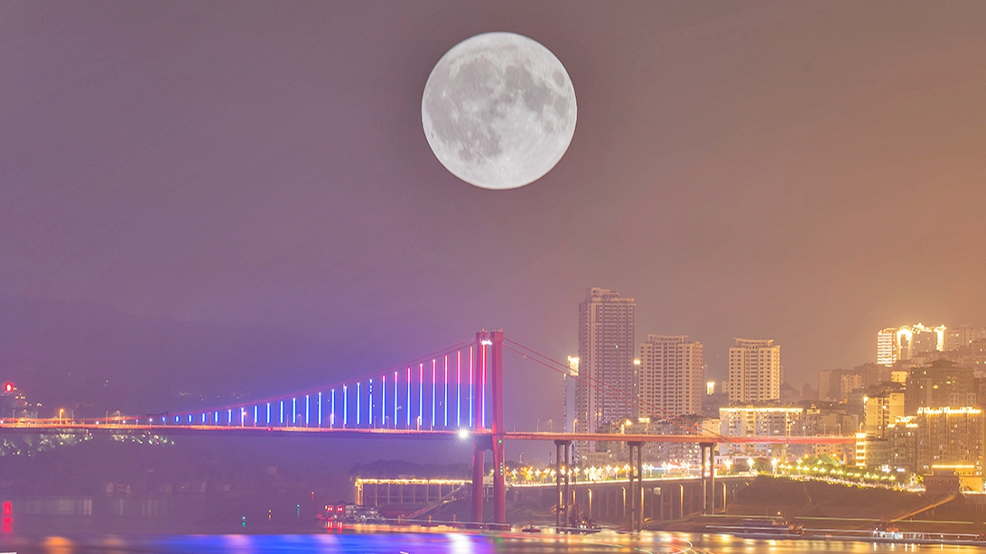 8月19日晚,2024年首个“超级月亮”现身重庆万州上空,为平湖之夜增添了一抹不同寻常的亮色,市民游客齐聚天生城共赏天文奇观。
