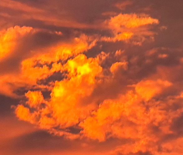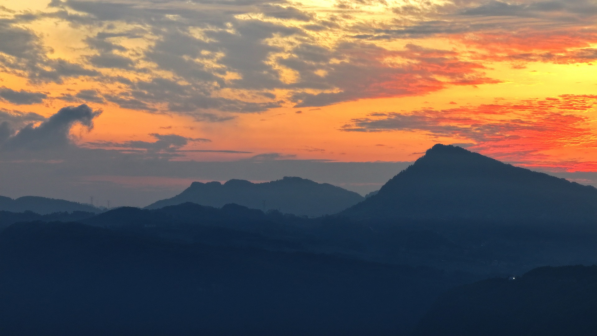 10月7日,天气阴转晴。傍晚时分,忠县城西上空出现大面积“火烧云”,蔚为壮观。江城忠州,远山近水,在晚霞的映照下,恰似一幅瑰丽无比的水彩画。