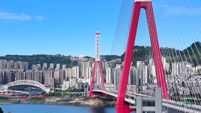 重庆被称为“中国桥都”。牌楼长江大桥位于重庆市万州区,于2014年8月8日动工兴建,2019年5月30日通车运营。牌楼长江大桥线路全长2120米,主桥长730米;桥面为双向六车道城市主干路,设计速度为60千米/小时。牌楼长江大桥红白相间的桥塔雄伟伫立,蔚为壮观。桥身如长虹卧波,与碧绿的高峡平湖相映成趣。