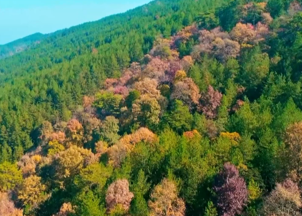 这段时间,在重庆忠县巴营山山脉,1000余亩彩林迎来最佳观赏季,漫山遍野都是红黄绿相间的色彩,一幅斑斓的巨型水彩画映入眼帘,美丽动人。