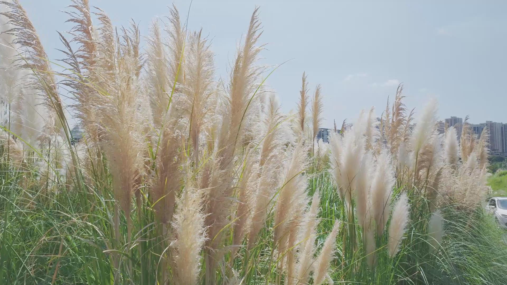 在重庆市九龙坡区跳磴河草海湾公园,100余亩的矮蒲苇连绵起伏,微风拂过,花絮纷飞,美仑美奂,让这里成为了一道亮丽的风景线。