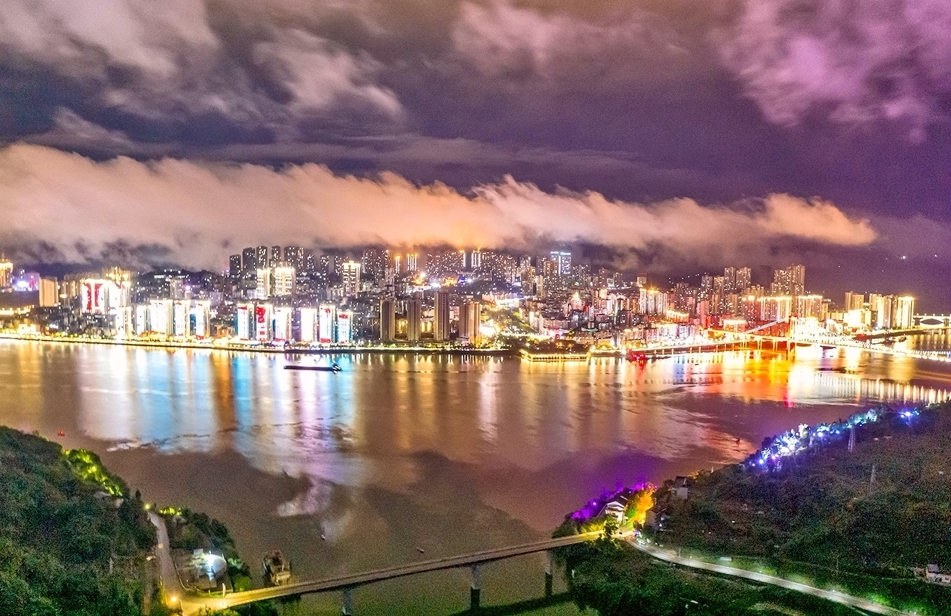 历经一场秋雨之后,10月19日晚,忠县忠州城上空云蒸霞蔚,如梦如幻,好似仙宫。