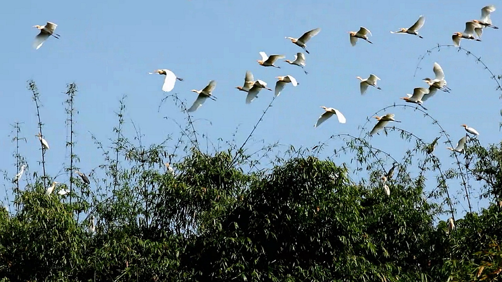 生态田园,白鹭翩飞。立秋以来,栖息在重庆忠县复兴镇凤凰村一带的鹭鸟开始陆续向南迁徙,孵化较晚的一批鹭鸟仍驻留在当地。每逢傍晚时分,万千归巢的鹭鸟与青山绿水共同奏响了一曲人与自然和谐共生的乐章。
