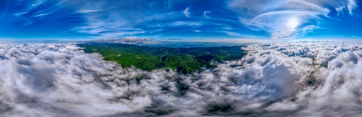 在重庆市大足区宝顶山,当太阳冉冉升起,霞光穿云破雾渲染了整片天空,云海奔流涌动,蔚为壮观。