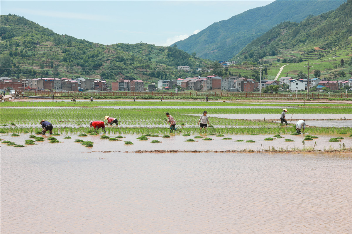 巫山:农时插秧忙 农田披“绿装”