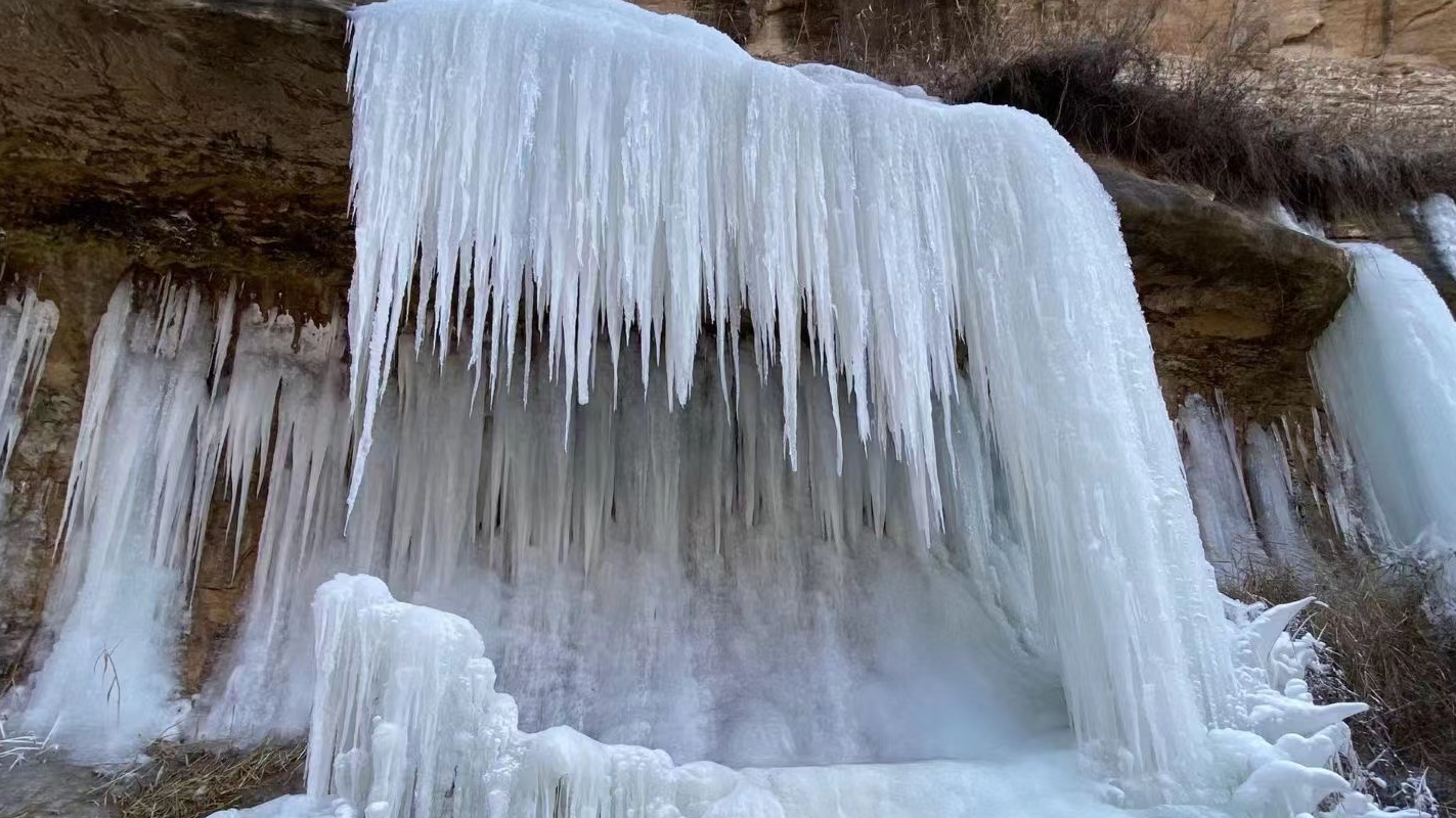 重庆城口:冰瀑“悬”山间