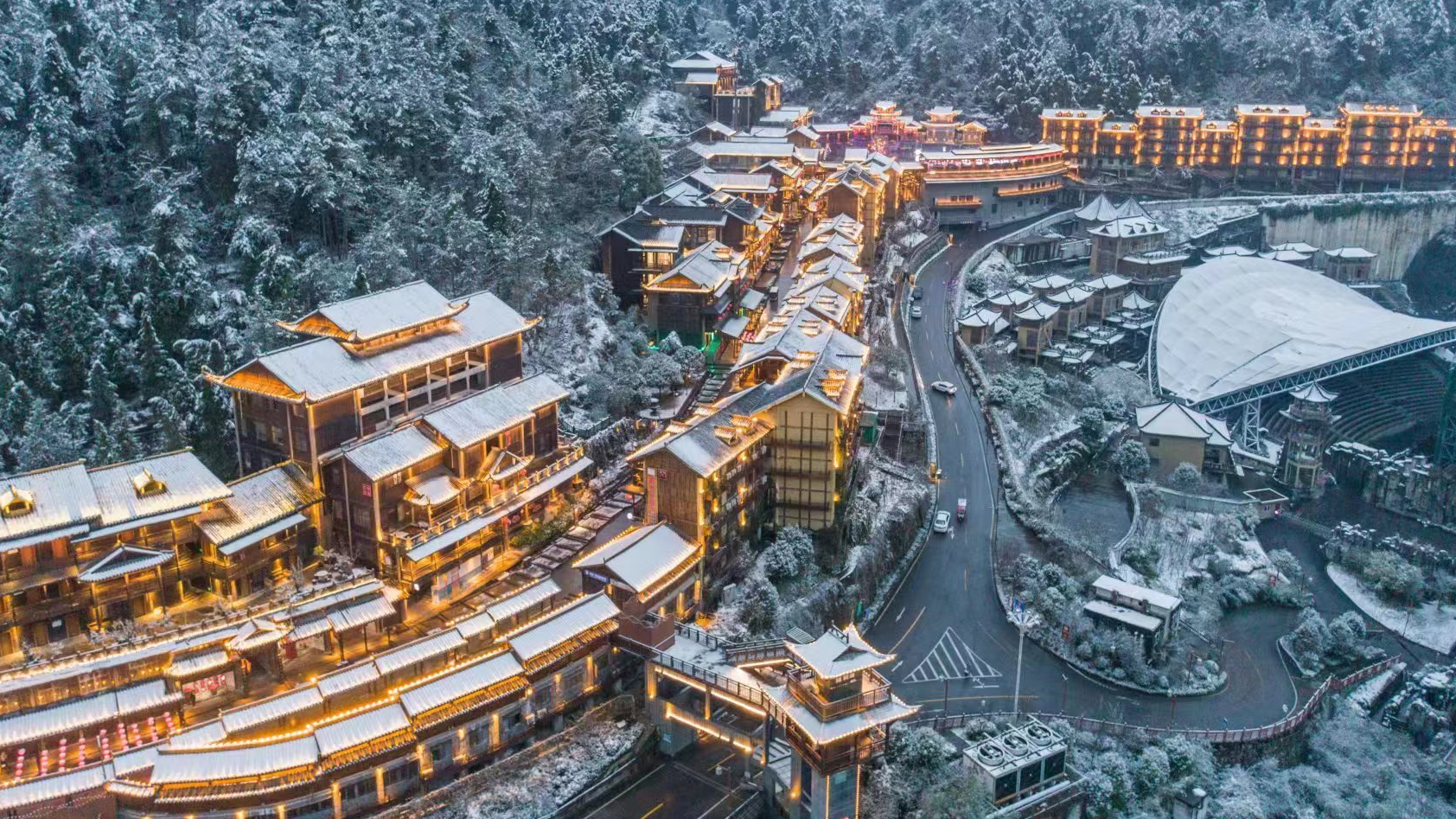 酉阳县酉州古城夜景。