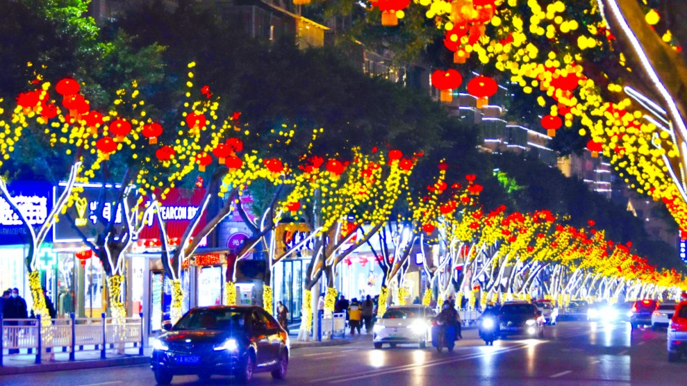 重庆巫山:春节临近年味浓 图为灿若星河的巫山县广东路。
