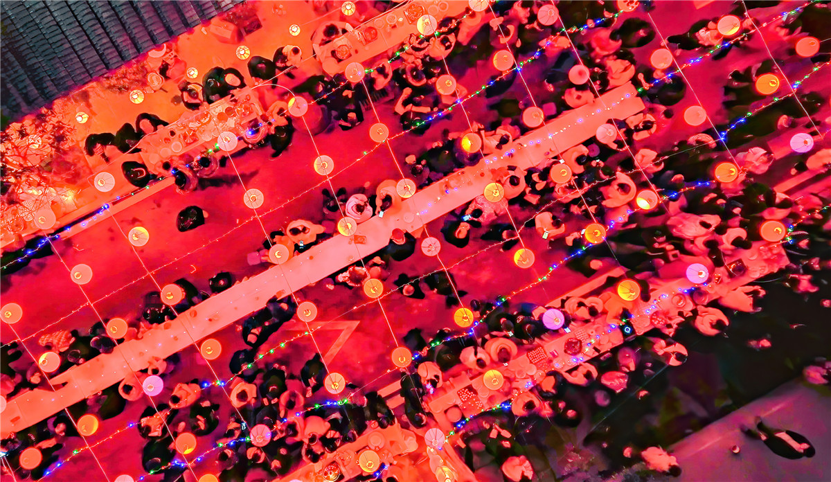 2月5日晚,重庆市巫山县的三峡里•竹枝村张灯结彩,游客和当地居民一起观灯会、猜灯谜、品汤圆、赏非遗,热热闹闹欢庆元宵佳节。