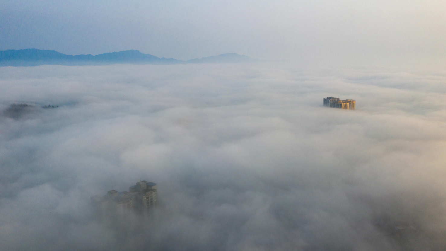 近日,重庆市綦江区打通镇出现大雾天气,云雾缭绕宛如仙境。