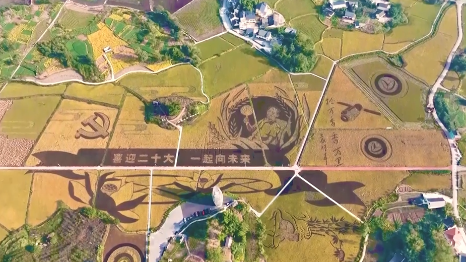 重庆大足:“五彩水稻”庆丰收 “彩绘大地”收割忙