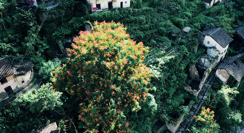 历经岁月沧桑的宁厂古镇,静静屹立在后溪河畔。金秋时节,栾树花开,尽染山峦,掩映古街,尽写古镇秋韵。