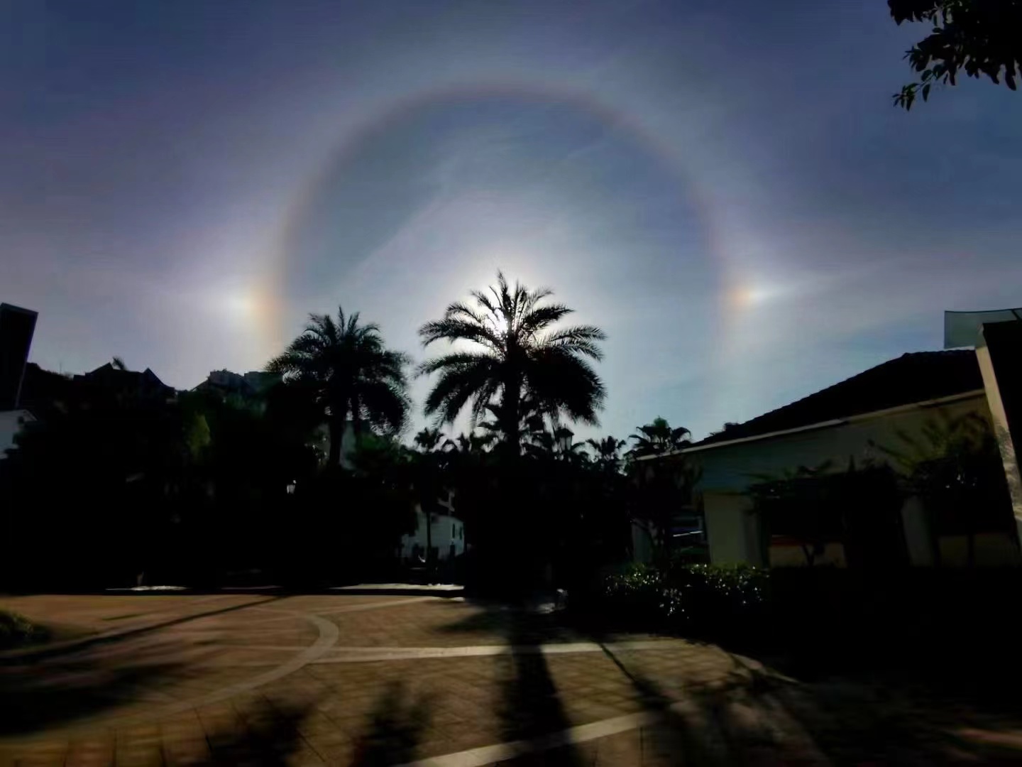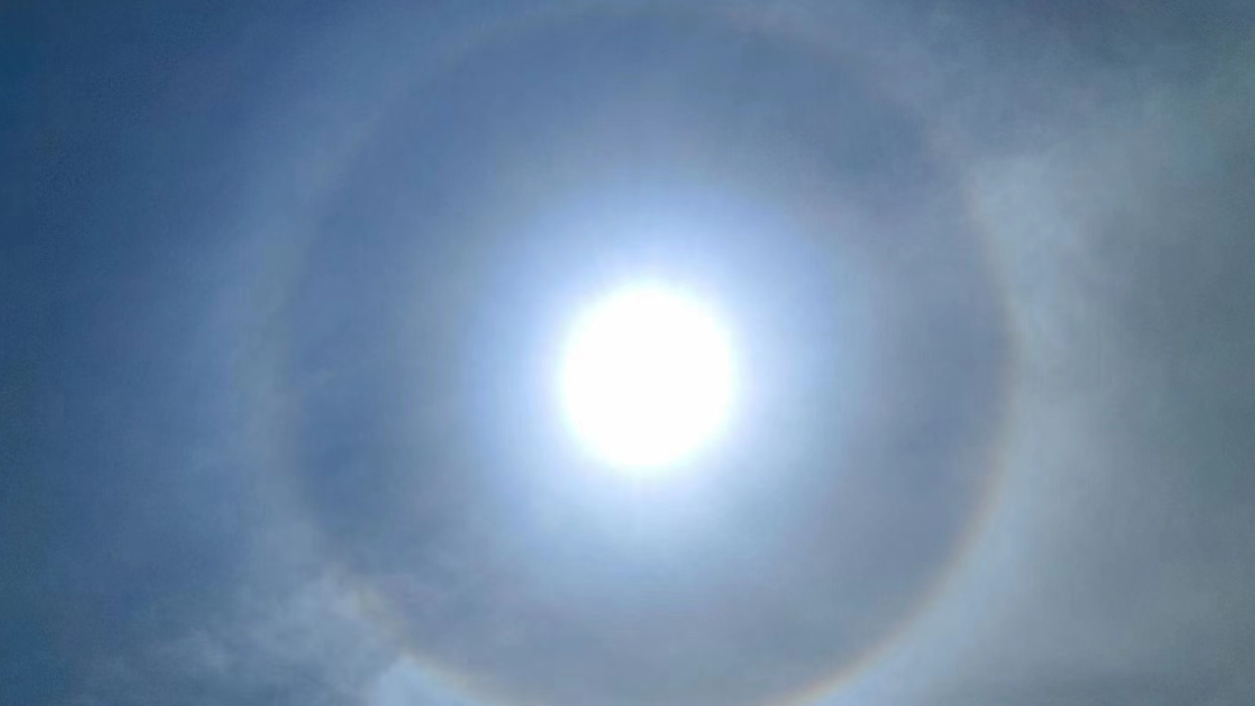 8月13日中午12点,忠县上空出现罕见的日晕景观,巨大的彩色光环围绕太阳一圈,清晰可见,在蓝天白云的衬托下,显得格外美丽。