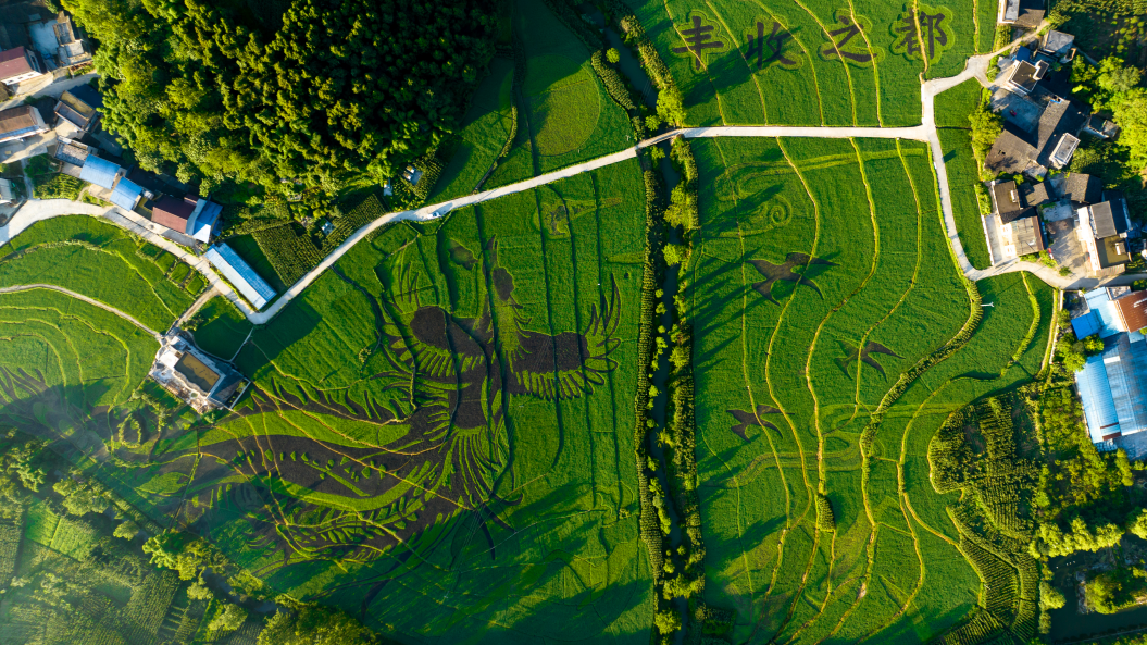 盛夏时节,生机盎然,眼下正是水稻生长旺盛的时期。记者近日在重庆市丰都县包鸾镇看到,160亩彩色稻田勾勒出不同图案,蔚为壮观。